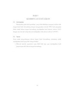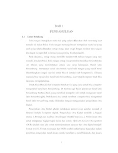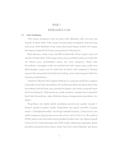 | Uncontrolled Keywords: | Segmentasi Karakter, Over-Segmentasi, Freeman Chain Code(FCC), Support Vector Machine(SVM), Tulisan Tangan Bersambung. |