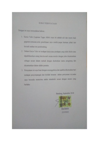 UNIKOM_21515010_Ima Ratiwi_SURAT PERNYATAAN.pdf - Published Version