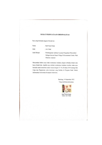 UNIKOM_RAFI NURUL HUDA_SURAT KETERANGAN ORISINALITAS.pdf - Published Version