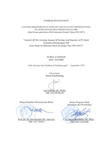Fatimah, Nurul (2018) Analisis Perkembangan Jumlah Tabungan Dan Deposito Pada Pt. Bank Nusantara Parahyangan Tbk Periode 2013-2017. Diploma thesis, Universitas Komputer Indonesia.