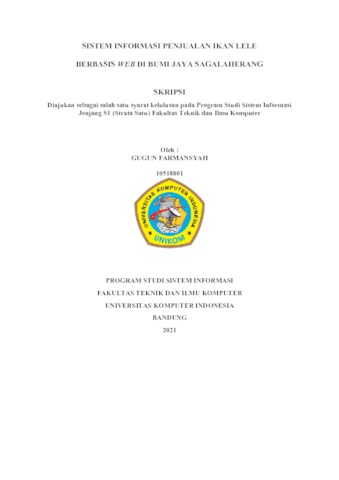 Farmansyah, Gugun (2021) Sistem Informasi Penjualan Ikan Lele Berbasis Web Di Bumi Jaya Sagalaherang. Other thesis, Univeristas Komputer Indonesia.