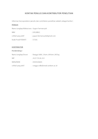 KONTAK PENULIS DAN KONTRIBUTOR PENELITIAN.pdf - Published Version