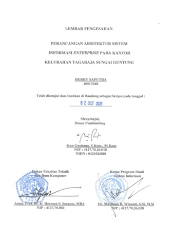 Saputra, Herry (2021) Perancangan Arsitektur Sistem Informasi Enterprise Pada Kantor Kelurahan Tagaraja Sungai Guntung. Other thesis, Univeristas Komputer Indonesia.