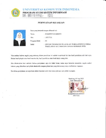 UNIKOM_Raghniya Rahayu_Surat Pernyataan Keaslian.pdf - Published Version