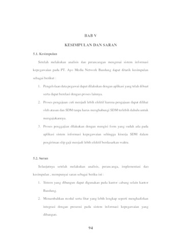 Harapan dari pembangunan sistem informasi kepegawaian berbasis website pada PT. Ayo Media Network Bandung ini diharapkan dapat membantu perusahaan dalam mengelola kepegawaian dan dapat membantu menyelesaikan kendala yang terdapat pada perusahaan dengan baik.