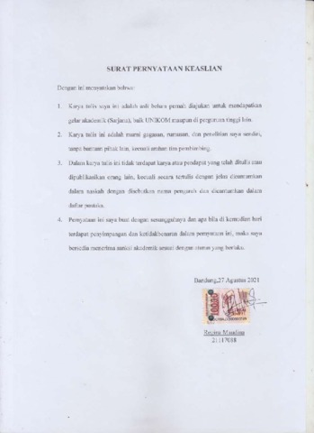 UNIKOM_21117088_REGINA MAUDINA_18_Surat Pernyataan Keaslian.pdf - Published Version