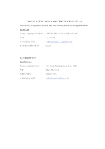 UNIKOM_ReksaMaulana_21117028_20.KONTAK PENULIS DAN KONTRIBUTOR PENULIS.pdf - Published Version