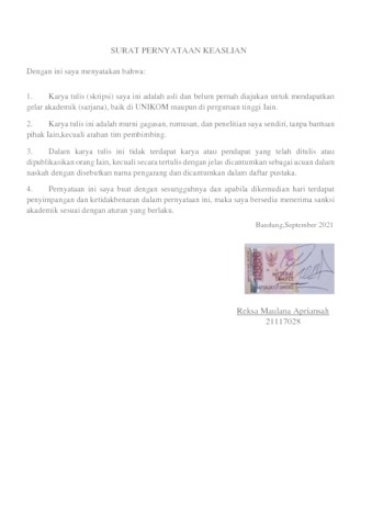 UNIKOM_ReksaMaulana_21117028_3.SURAT PERNYATAAN KEASLIAN.pdf - Published Version