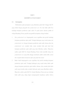 Berdasarkan penelitian ini dapat diambil kesimpulan due professional care dan bukti audit berpengaruh secara positif dan signifikan terhadap ketepatan pemberian opini audit pada auditor yang bekerja di Kantor Akuntan Publik wilayah Bandung Timur.