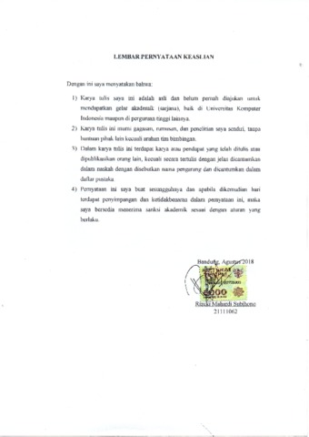 02 UNIKOM_RizckiMahardiSubihono_LEMBAR PERNYATAAN KEASLIAN.pdf - Published Version
