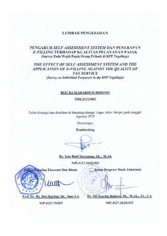 Subihono, Rizcki Mahardi (2018) Pengaruh Self Assessment System Dan Penerapan E-Filling Terhadap Kualitas Pelayanan Pajak (Survei Pada Wajib Pajak Orang Pribadi di KPP Pratama Tegallega). Other thesis, Universitas Komputer Indonesia.