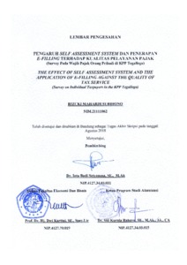 | Uncontrolled Keywords: | Self Assessment System, Penerapan E-filling, dan Kualitas Pelayanan Pajak |