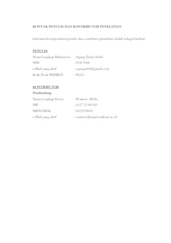 KONTAK PENULIS DAN KONTRIBUTOR PENELITIAN.pdf - Published Version