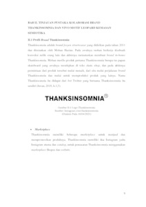 Thanksinsomnia adalah brand fesyen streetwear yang berkolaborasi dengan Vivo brand alat kontrasepsi pada tanggal 7 sampai 14 Febuari 2020. Bertepatan pada hari Valentine. Kolaborasi ini menghasilkan produk salah satunya kondom yang memakai motif Leopard sebagai visual kemasan nya. Pemilihan motif Leopard sebagai inti kemasan melahirkan berbagai macam makna-makna yang terdapat pada kemasan kondom. Motif Leopard akan dianalisis menggunakan analisis semiotika Roland Barthes dan Saussure sebagai landasan semiotika, yang mengkaji denotatif, konotatif, dan mitos pada motif Leopard dan motif Leopard yang sudah di aplikasikan pada kemasan kondom. Hasil analisis penelitian menunjukkan makna motif Leopard yang digunakan pada kemasan kondom makna seuksual diketahui secara ekplisit dan mewah diketahui secara implisit. Kedua makna tersebut bisa saja bertukar menjadi seksual implisit dan mewah yang eksplisit bila motif Leopard tidak digunakan dengan hal yang berbau seksual.