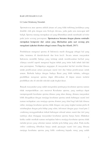 Sperma adalah jutaan sel yang tidak terhitung jumlahnya yang dimiliki oleh seorang pria, sperma yang dimana untuk membuahi sel telur untuk menghasilkan keturunan, yang dimana sperma memiliki sebuah ekosistem penting dalam kelangsungan umat manusia,namun pembahasan seputar sperma di Indonesia masih sangat jarang untuk dibahas secara terbuka,dan juga informasi seputar sperma lebih melekat pada hubungan suami istri, yang dimana kesehatan sperma bukan hanya di jaga ketika kita sudah menikah namun harus dijaga pada masa umur ideal, yang menjadikan rasa keingin tahuan perihal sperma diumur ideal masih kurang diminati oleh sebagian khalayak tentang menjaga kesehatan sperma, dan pola hidup sehat dalam menjaga kesehatan sperma, agar informasi mengenai pengetahuan umum seputar sperma agar dapat dibagikan pada khalayak luas,maka media instagram dengan konten berisikan infografis, agar informasi dapat terjangkau khalayak luas dikarenakan, hamper semua orang kini menggunakan media social terutama intsagram pada umur 20-30 tahun.