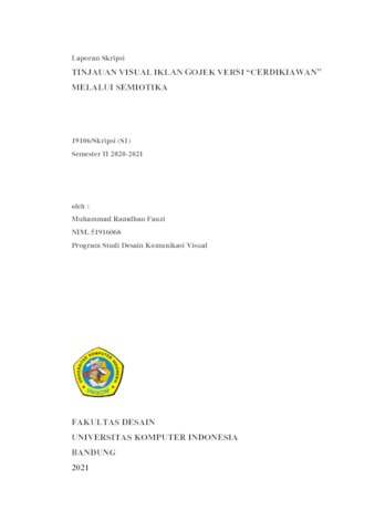 Fauzi, Muhammad Ramdhan (2021) Tinjauan Visual Iklan Gojek Versi “Cerdikiawan” Melalui Semiotika. Other thesis, Univeristas Komputer Indonesia.