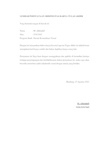 UNIKOM_M. Alkhadafi_Lembar Pernyataan Orisinalitas.pdf - Published Version