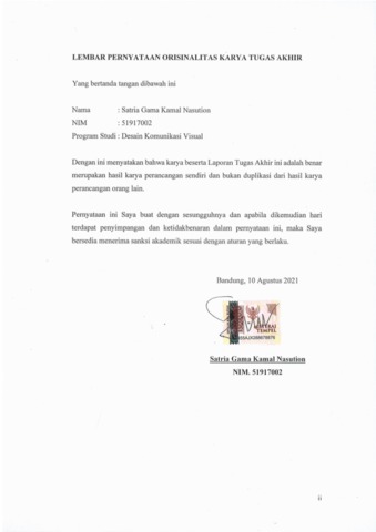 UNIKOM_Satria Gama Kamal Nasution_Lembar Pernyataan Orisinalitas.pdf - Published Version