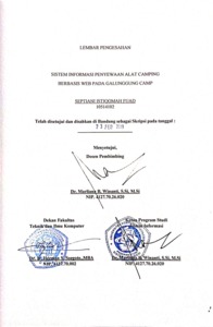 | Uncontrolled Keywords: | sistem informasi, penyewaan alat kemah, web. |
