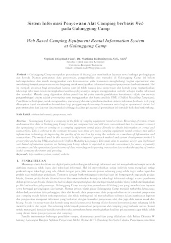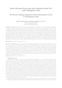 Galunggung Camp merupakan perusahaan di bidang jasa memberikan layanan sewa berbagai perlengkapan alat kemah. Namun pencatatan data penyewaan, pengembalian dan transaksi di Galunggung Camp ini belum terkomputerisasi dan masih menggunakan cara konvensional yaitu konsumen menghubungi bagian operasional atau mendatangi tempat penyewaan secara langsung untuk mendapatkan informasi mengenai penyewaan dan bertransaksi. Hal ini menjadi ancaman bagi perusahaan karena saat ini telah banyak jasa penyewaan alat kemah yang memanfaatkan teknologi informasi dalam meningkatkan kualitas pelayanannya dengan menggunakan website sebagai media informasi dan transaksi. Metode yang digunakan dalam penelitian ini yaitu metode pendekatan berorientasi objek dan metode pengembangan sistem adalah prototyping serta menggunakan alat bantu analisis UML (Unified Modelling Language). Penelitian ini bertujuan untuk menganalisis, merancang dan mengimplementasikan sistem informasi berbasis web yang diharapkan dapat memberikan kemudahan bagi penggunanya khususnya konsumen serta bagian operasional dalam hal pencatatan data dan laporan data transaksi sehingga kualitas pelayanan di perusahaan ini semakin baik dan berkembang.