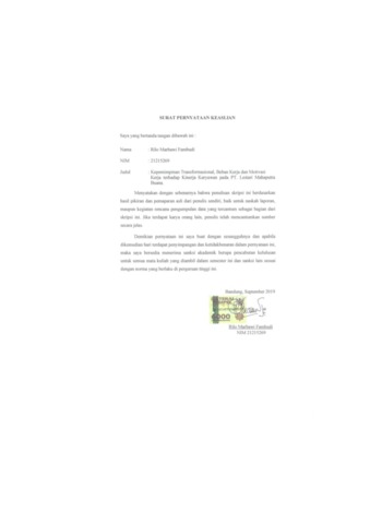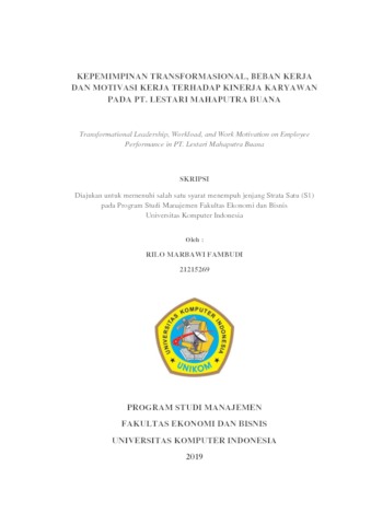 Fambudi, Rilo Marbawi (2019) Kepemimpinan Transformasional, Beban Kerja Dan Motivasi Kerja Terhadap Kinerja Karyawan Pada Pt. Lestari Mahaputra Buana. Other thesis, Univeristas Komputer Indonesia.