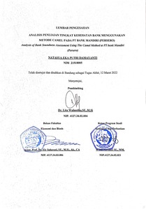 Damayanti, Natasya Eka Putri (2022) Analisis Penilaian Tingkat Kesehatan Bank Dengan Menggunakan Metode Camel Pada Pt. Bank Mandiri (Persero). Diploma thesis, Univeristas Komputer Indonesia.