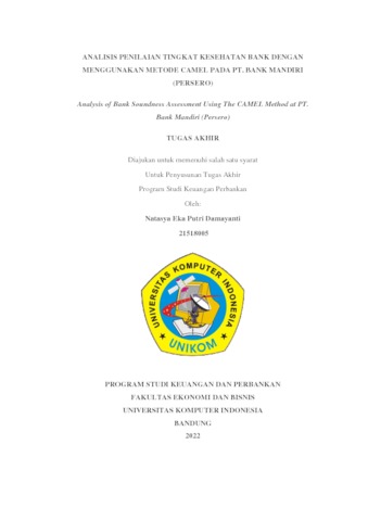 Damayanti, Natasya Eka Putri (2022) Analisis Penilaian Tingkat Kesehatan Bank Dengan Menggunakan Metode Camel Pada Pt. Bank Mandiri (Persero). Diploma thesis, Univeristas Komputer Indonesia.