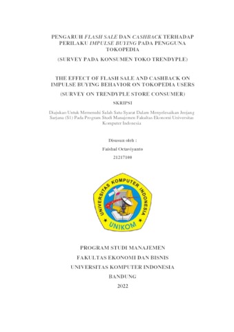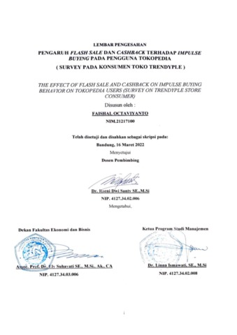 Octaviyanto, Faishal (2022) Pengaruh Flash Sale Dan Cashback Terhadap Perilaku Impulse Buying Pada Pengguna Tokopedia. Other thesis, Univeristas Komputer Indonesia.