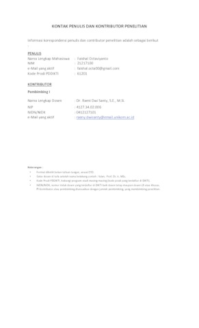 UNIKOM_Faishal Octaviyanto_Lembar Kontak Penulis dan Kotributor.pdf - Published Version