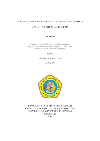 Ramdhani, Madita (2019) Sistem informasi penjualan jam tangan di Toko Jamkita berbasis desktop. Other thesis, Universitas Komputer Indonesia.