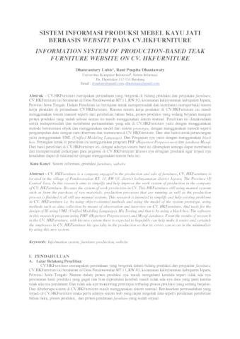 | Uncontrolled Keywords: | Sistem informasi, produksi furniture, website |