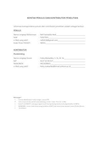 UNIKOM_NEFI SALSABILA HADI_KONTAK PENULIS DAN KONTRIBUTOR PENELITIAN.pdf - Published Version