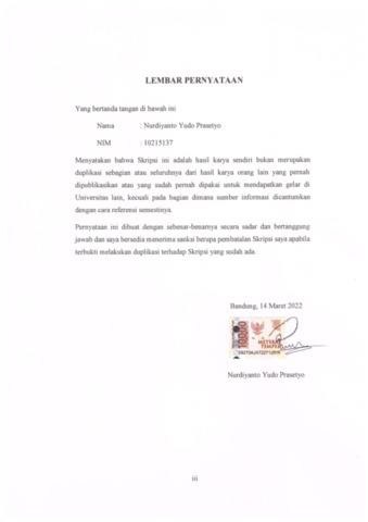 UNIKOM_Nurdiyanto Yudo Prasetyo_Lembar Pernyataan.pdf - Published Version