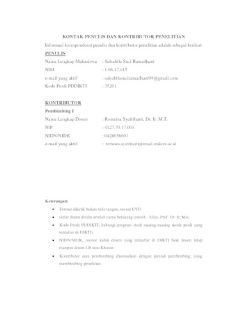 KONTAK PENULIS DAN KONTRIBUTOR PENELITIAN.pdf - Published Version