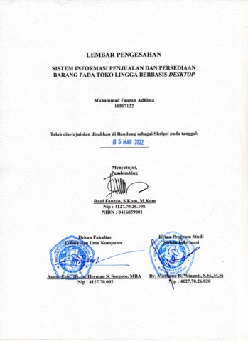 Adhima, Muhammad Fauzan (2022) Sistem Informasi Penjualan Dan Persediaan Barang Pada Toko Lingga Berbasis Desktop. Other thesis, Univeristas Komputer Indonesia.