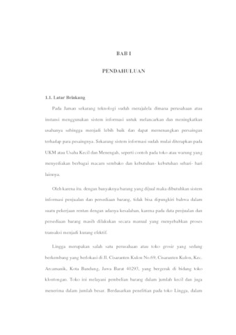 Untuk itu Toko lingga perlu mengelola data penjualan barang pada setiap transaksi dengan tujuan mengetahui stok barang dan memudahkan dalam melakukan proses penjualan barang. dalam proses bisnisnya toko ini belum sepenuhnya menggunakan teknologi informasi, sehingga ada beberapa kendala yang ditemukan seperti pada proses penjualan barang toko Lingga hanya menggunakan kertas struk untuk pendataan penjualan barang dan menggunakan kalkulator untuk perhitungan yang membuat proses tersebut rentan mengalami kesalahan. Selain itu, penyimpanan data barang yang kurang aman, pencarian data barang yang belum efektif dan pelaporan setiap bulannya memerlukan waktu yang cukup lama. Dengan adanya sistem informasi ini diharapkan bisa membantu Toko Grosir Lingga untuk meningkatkan keuntungan dari sebelumnya. Meningkatkan jumlah penjualan dengan adanya sistem informasi yang terintegrasi yang membantu para pekerja memudahkan pekerjaannya.