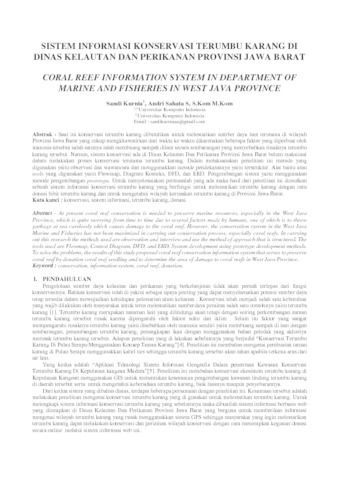 Kurnia, Sandi (2019) Sistem Informasi Konservasi Terumbu Karang Di Dinas Kelautan Dan Perikanan Provinsi Jawa Barat. Other thesis, Universitas Komputer Indonesia.