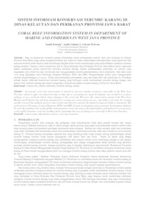 Saat ini konservasi terumbu karang dibutuhkan untuk melestarikan sumber daya laut terutama di wilayah Provinsi Jawa Barat yang cukup mengkhawatirkan dari waktu ke waktu dikarenakan beberapa faktor yang diperbuat oleh manusia tersebut salah satunya ialah membuang sampah dilaut secara sembarangan yang menyebabkan rusaknya terumbu karang tersebut. Namun, sistem konservasi ada di Dinas Kelautan Dan Perikanan Provinsi Jawa Barat belum maksimal dalam melakukan proses konservasi terutama terumbu karang. Dalam melaksanakan penelitian ini metode yang digunakan yaitu observasi dan wawancara dan menggunakkan metode pendekatannya yaitu terstruktur. Alat bantu atau tools yang digunakan yaitu Flowmap, Diagram Konteks, DFD, dan ERD. Pengembangan sistem yaitu menggunakan metode pengembangan prototype. Untuk menyelesaiakan permasalah yang ada maka hasil dari penelitian ini diusulkan sebuah sistem informasi konservasi terumbu karang yang berfungsi untuk melestarikan terumbu karang dengan cara donasi bibit terumbu karang dan untuk mengetahui wilayah kerusakan terumbu karang di Provinsi Jawa Barat.