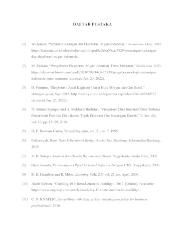 | Uncontrolled Keywords: | Visualisasi Data, Eksplorasi, Cadangan minyak dan gas, Produksi Minyak, Informasi eksplorasi. |