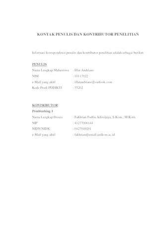 UNIKOM_IFFAT ANDRIANO_LEMBAR KONTAK PENULIS DAN KONTRIBUTOR.pdf - Published Version