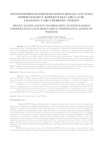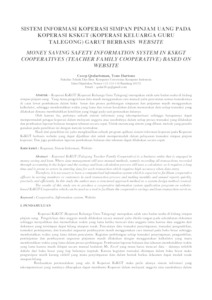 Koperasi KsKGT (Koperasi Keluarga Guru Talegong) merupakan salah satu badan usaha di bidang simpan pinjam uang. Yang mana pengelolaan data masih menggunakan cara manual yaitu pencatatan semua transaksinya di catat lewat pembukuan dalam buku besar dan proses perhitungan simpanan dan pinjaman masih menggunakan kalkulator, sehingga membutuhkan waktu yang lama dan rawan kesalahan dalam memasukan data setiap transaksi yang dilakukan dimana membutuhkan ketelitian yang tinggi pada saat pemasukan datanya. Oleh karena itu, perlunya sebuah sistem informasi yang tekomputerisasi sehingga harapannya dapat mempermudah petugas koperasi dalam melayani anggota atau nasabahnya dalam setiap proses transaksi yang dilakukan dan pembuatan laporan bulanan maupun tahunan secara cepat. Untuk merancang sistem yang dibuat, metode yang penulis gunakan pada penelitian ini dengan metode terstruktur. Hasil dari penelitian ini yaitu menghasilkan sebuah program aplikasi sistem informasi koperasi pada Koperasi KsKGT berbasis website yang dapat dijadikan alat untuk mempermudah dalam pelayanan transaksi simpan pinjam koperasi. Dan juga pembuatan laporan pembukuan bulanan dan tahunan dapat dilakukan secara cepat.