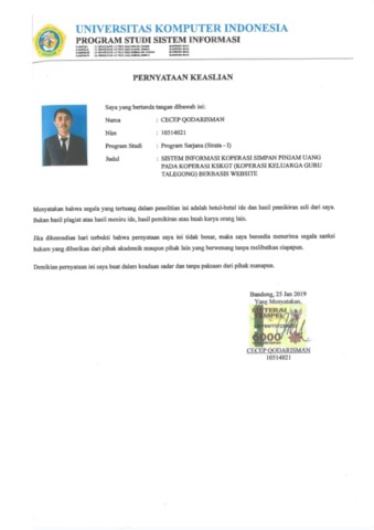 UNIKOM_Cecep Qodarisman_Lembar Pernyataan Keaslian.pdf - Published Version