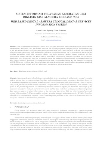 Epanop, Putra Prima (2019) Sistem Informasi Pelayanan Kesehatan Gigi Diklinik Gigi Almeera Berbasis Web. Other thesis, Universitas Komputer Indonesia.