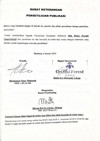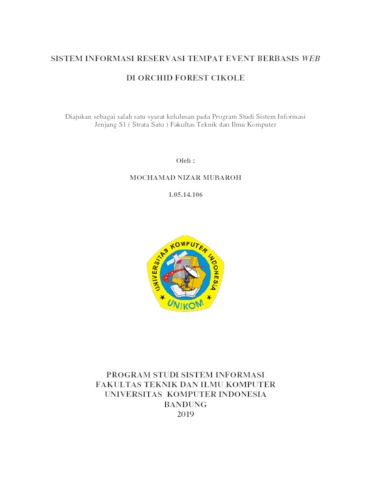 Mubarok, Mochamad Nizar (2019) Sistem Informasi Reservasi Tempat Event Berbasis Web Di Orchid Forest Cikole. Other thesis, Universitas Komputer Indonesia.