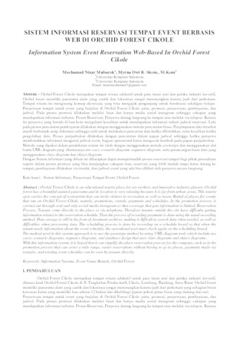 Orchid Forest Cikole merupakan tempat wisata edukatif untuk para insan seni dan pelaku industri inovatif, Orchid forest memiliki panorama alam yang cantik dan lokasinya sangat menenangkan karena jauh dari perkotaan. Tempat wisata ini mengusung konsep ekowisata yang bisa mengajak pengunjung untuk berekreasi sekaligus belajar. Penyewaan tempat untuk event yang berjalan di Orchid Forest Cikole yaitu, promosi, penyewaan, pembayaran, dan jadwal. Pada proses promosi dilakukan melalui lisan dan hanya media sosial instagram sehingga cakupan yang mendapatkan informasi terbatas. Proses Reservasi, Penyewa datang langsung ke tempat atau melalui via telepon. Karena itu penyewa yang berada di luar kota mengalami kesulitan untuk mendapatkan informasi terkait jadwal reservasi. Lalu pada proses pencatatan pembayaran dilakukan dengan menggunakan metode pencatatan biasa. Penyimpanan data tersebut masih berbentuk arsip dokumen sehingga sulit untuk melakukan pencarian data ketika dibutuhkan, serta kesulitan ketika pengolahan data. Proses penjadwalan dilakukan dengan pencatatan dalam papan jadwal sehingga ketika penyewa membutuhkan informasi mengenai jadwal event, bagian operasional harus mengecek kembali pada papan penjadwalan. Metode yang dipakai dalam pendekatan sistem ini ialah dengan menggunakan metode prototype dan menggunakan alat bantu UML diagram yang diantaranya use case, scenario diagram, sequence diagram, serta perancangan basis data yang menggunakan class diagram dan object diagram. Dengan Sistem informasi yang dibuat ini diharapkan dapat mempermudah proses reservasi tempat bagi pihak perusahaan seperti dalam proses promosi yang bisa menjangkau cakupan luas, reservasi yang lebih mudah tanpa harus datang ke tempat, pembayaran dilakukan via tranfer, dan jadwal event yang ada bisa dilihat oleh penyewa secara langsung.