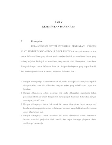 | Uncontrolled Keywords: | Sistem informasi, penjualan, CV. Sumber Pratama |