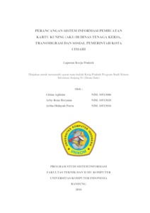 Aghinia, Ghina and Heryana, Arby Reza and Putra, Artha Hidayah (2016) Perancangan Sistem Informasi Pembuatan Kartu Kuning (Ak1) Di Dinas Tenaga Kerja, Transmigrasi Dan Sosial Pemerintah Kota Cimahi. Other thesis, Universitas Komputer Indonesia.