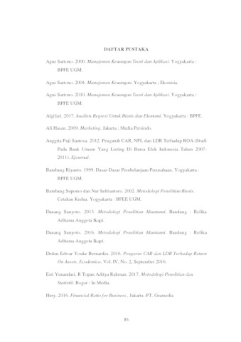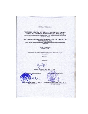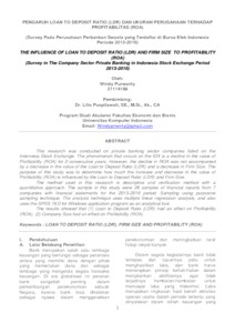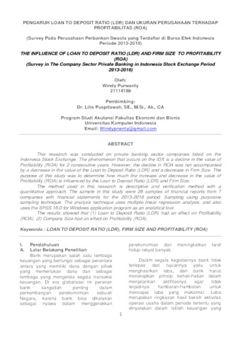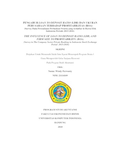 Purwanty, Windy (2018) Pengaruh Loan To Deposit Ratio (Ldr) Dan Ukuran Perusahaan Terhadap Profitabilitas (Roa) (Survey Pada Perusahaan Perbankan Swasta yang terdaftar di Bursa Efek Indonesia Periode 2013-2016). Other thesis, Universitas Komputer Indonesia.