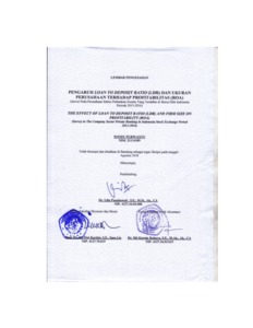 | Uncontrolled Keywords: | Loan to Deposit Ratio (LDR), Ukuran Perusahaan, dan Profitabilitas (ROA) |