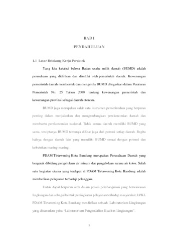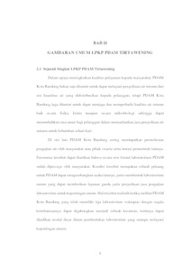 PDAM Tirtawening Kota Bandung merupakan Perusahaan Daerah yang bergerak dibidang pengelolaan air minum dan pengelolaan sarana air kotor. Salah satu kegiatan utama yang terdapat di PDAM Tirtawening Kota Bandung adalah memberikan pelayanan terhadap pelanggan. Untuk dapat berperan serta dalam proses pembangunan yang berwawasan lingkungan dan sebagai bentuk peningkatan pelayanan terhadap masyarakat, LPKL PDAM Tirtawening Kota Bandung mendirikan sebuah Laboratorium Lingkungan yang dinamakan yaitu “Laboratorium Pengendalian Kualitas Lingkungan”. Laboratorium Lingkungan tersebut merupakan pengembangan dan